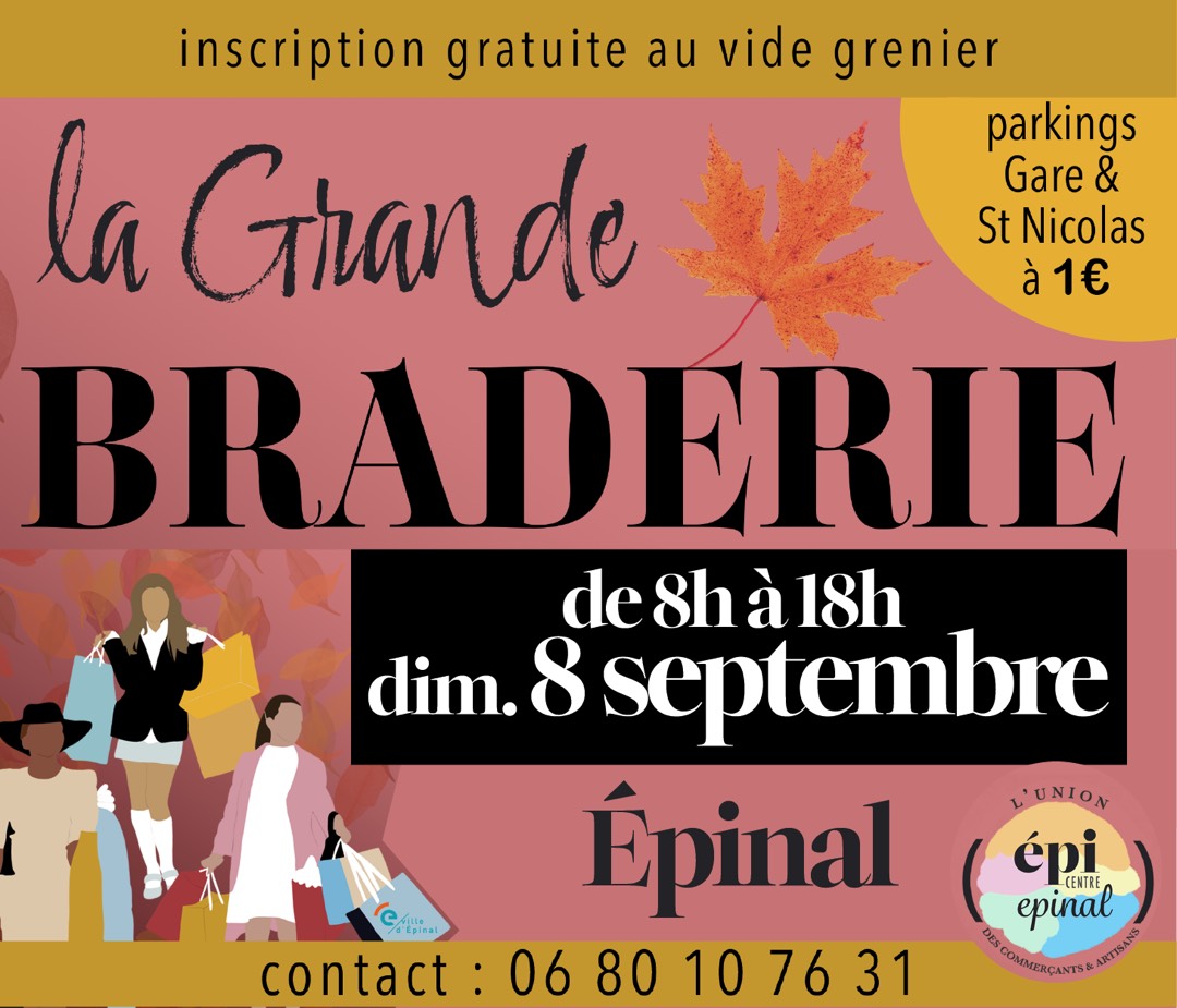 Epicentre, l'association des Commerçants et Artisans d'Epinal, organise la 54ème braderie de rentrée qui aura lieu le dimanche 8 septembre à Épinal de 8h à 18h.