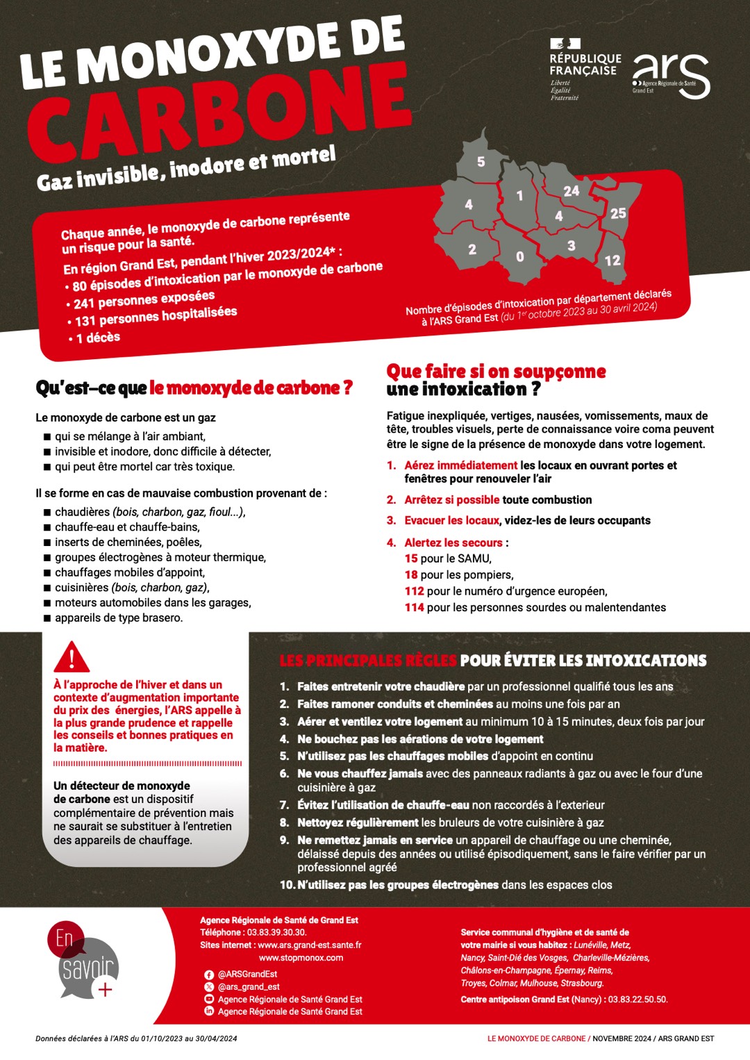 L’ARS Grand Est lance sa campagne annuelle de prévention des intoxications par le monoxyde de carbone