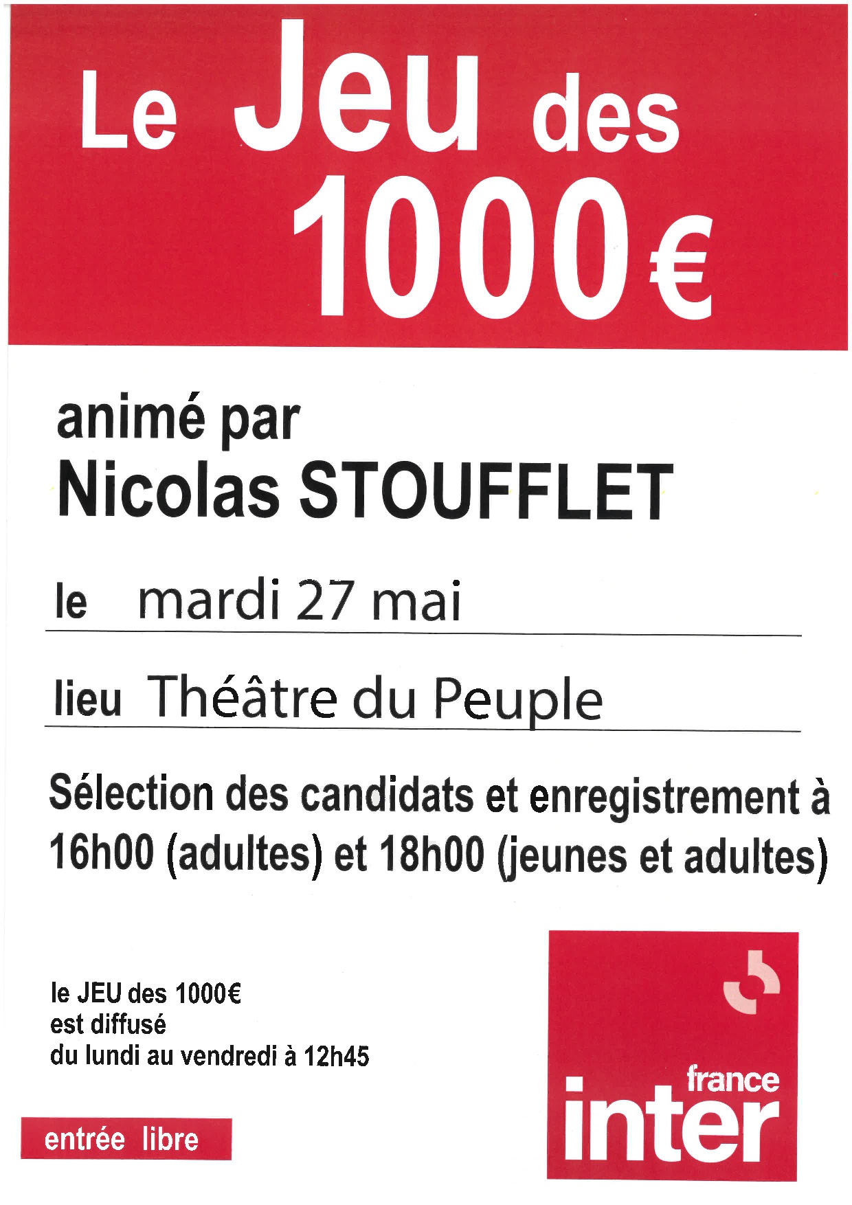 Le célèbre jeu des 1000 euros de France Inter au Théâtre du Peuple de Bussang le 27 mai !