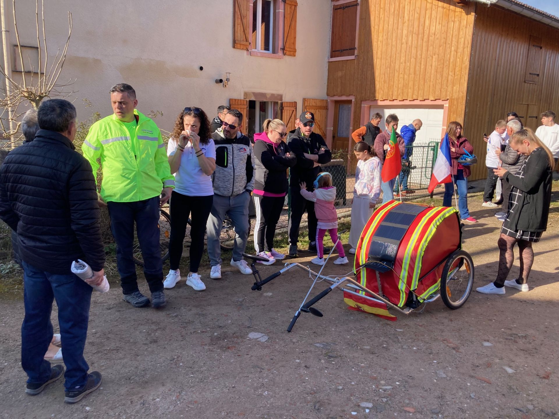 Entouré d'une vingtaine d'amis et membres de sa famille, il a débuté son grand défi, rallier à pied Champ-le-Duc, village vosgien où il réside, à Fatima au Portugal en un peu plus de 4 mois à raison de 5 heures de marche par jour, 5 jours par semaine.