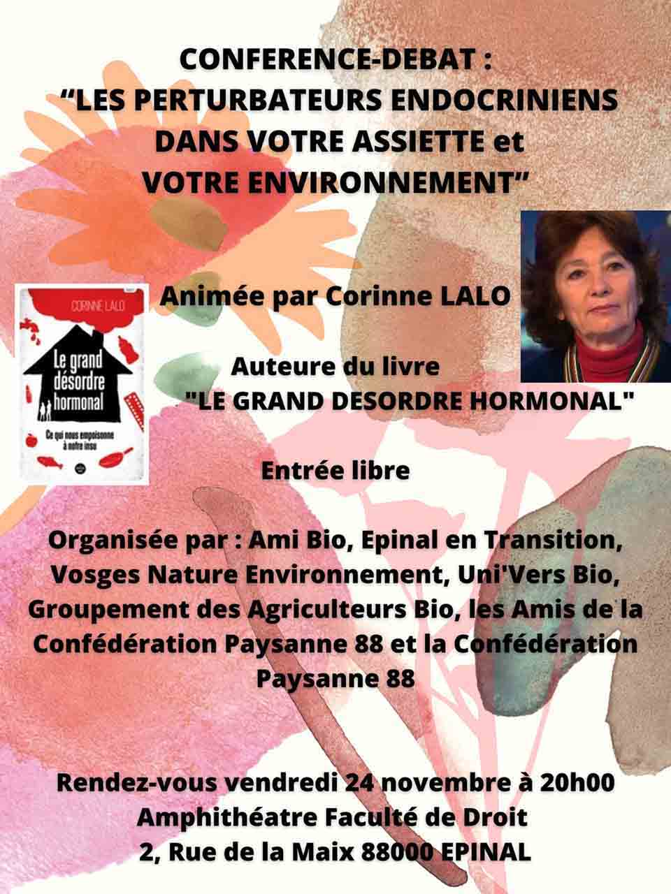 Conférence-débat « Les perturbateurs endocriniens dans votre assiette et votre environnement » ce vendredi 24 novembre à 20h à la Fac de Droit à Epinal.