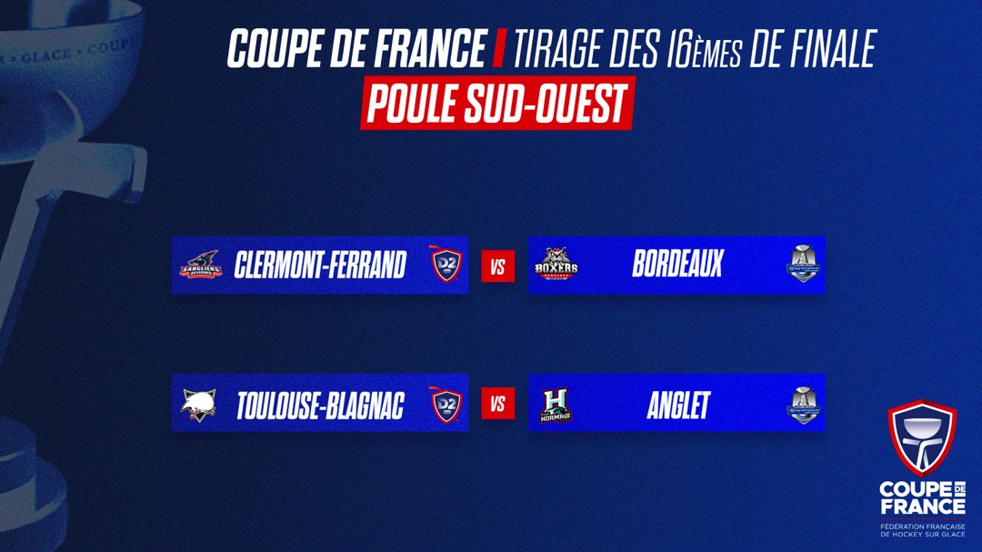 Le tirage au sort des seizièmes de finale de la Coupe de France de hockey sur glace a livré son verdict ce lundi à 13 h, au siège de la fédération. C’est Adrien Mousset, gardien de but de l’équipe de France de para-hockey, qui a procédé au tirage en présence de Luc Mainfray, responsable de la compétition.