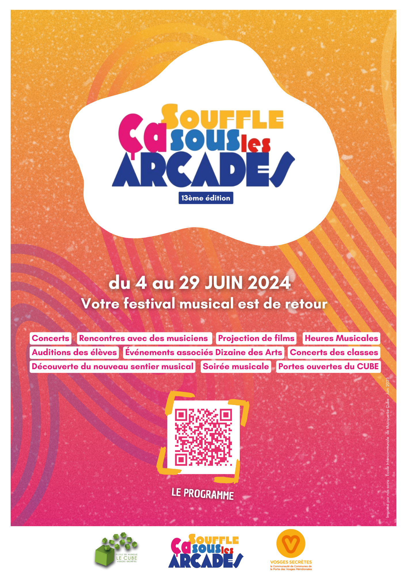 L’École intercommunale de musique Le Cube, portée par la Communauté de Communes de la Porte des Vosges Méridionales (CCPVM), lance un mois de juin placé sous le signe de la musique, de la découverte et de la convivialité. De nombreux événements sont proposés à travers le territoire, à commencer par la 13e édition du festival “Ça souffle sous les arcades”, qui animera les Vosges Secrètes du 4 au 29 juin.