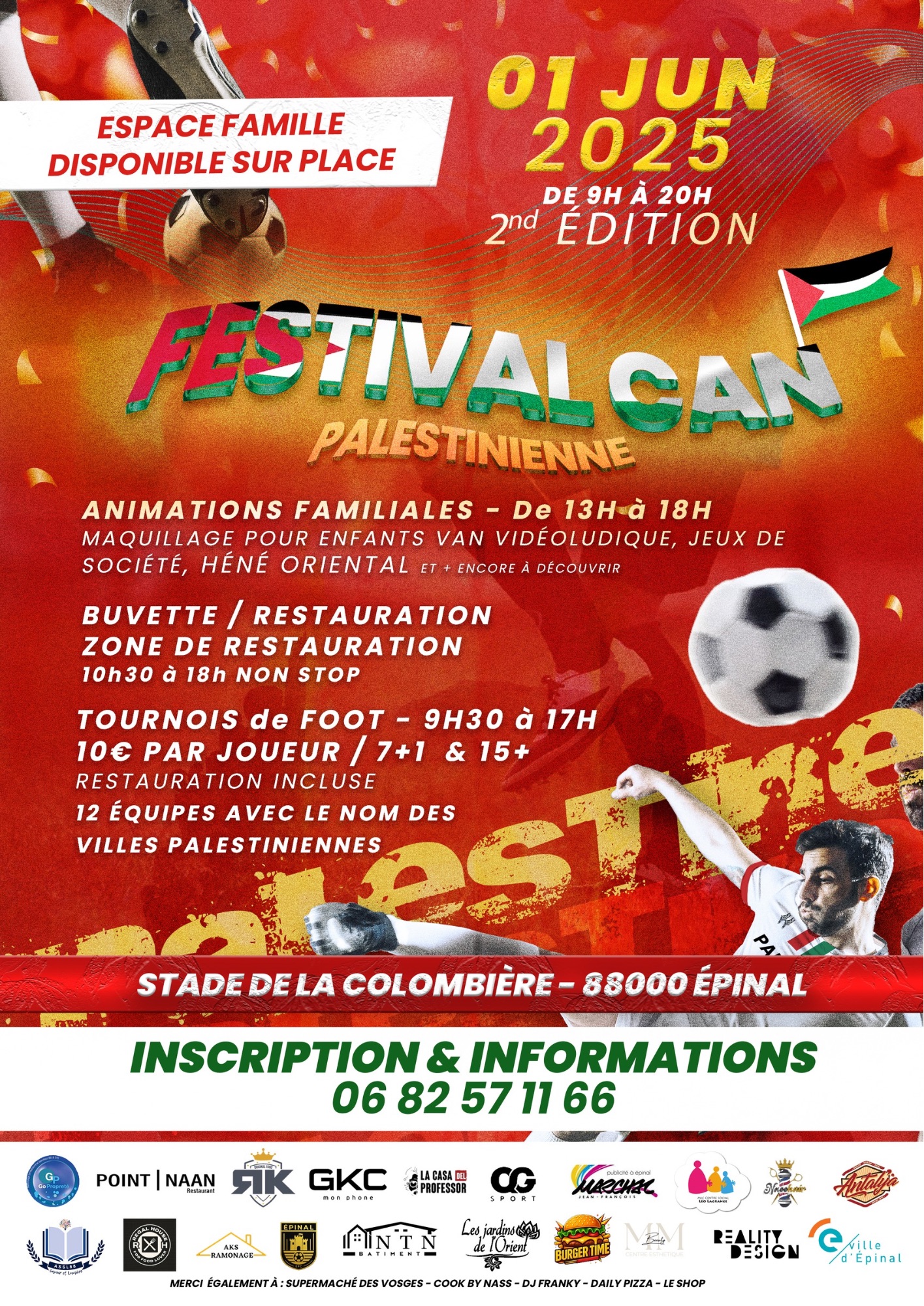 Cette 2ème édition du festival CAN Palestinienne, qui se déroulera le dimanche 1er juin, de 9h30 à 20h au Stade de la Colombière à Épinal, est à la fois sportive, culturelle et familiale