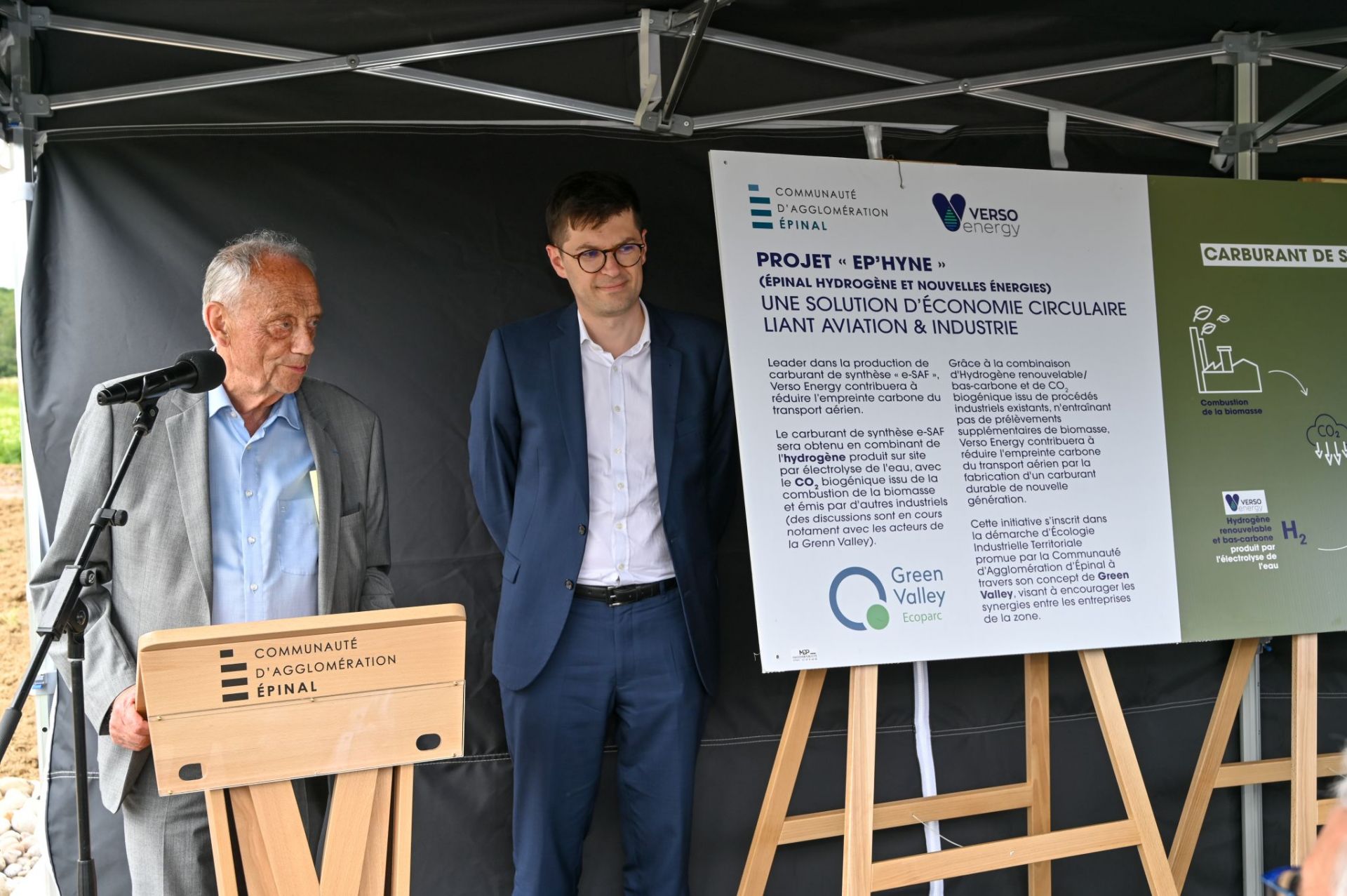 Epinal - le 12 juillet 2024 – Verso Energy, en collaboration avec la Communauté d’Agglomération d’Epinal, a signé auprès de SEBL Grand Est, aménageur de l’écoparc, une promesse de vente pour un terrain de 21,5 ha qui accueillera le projet Ep’HyNE (Epinal Hydrogène et Nouvelles Energies) visant à la production de carburant d’aviation durable à l’horizon 2029.