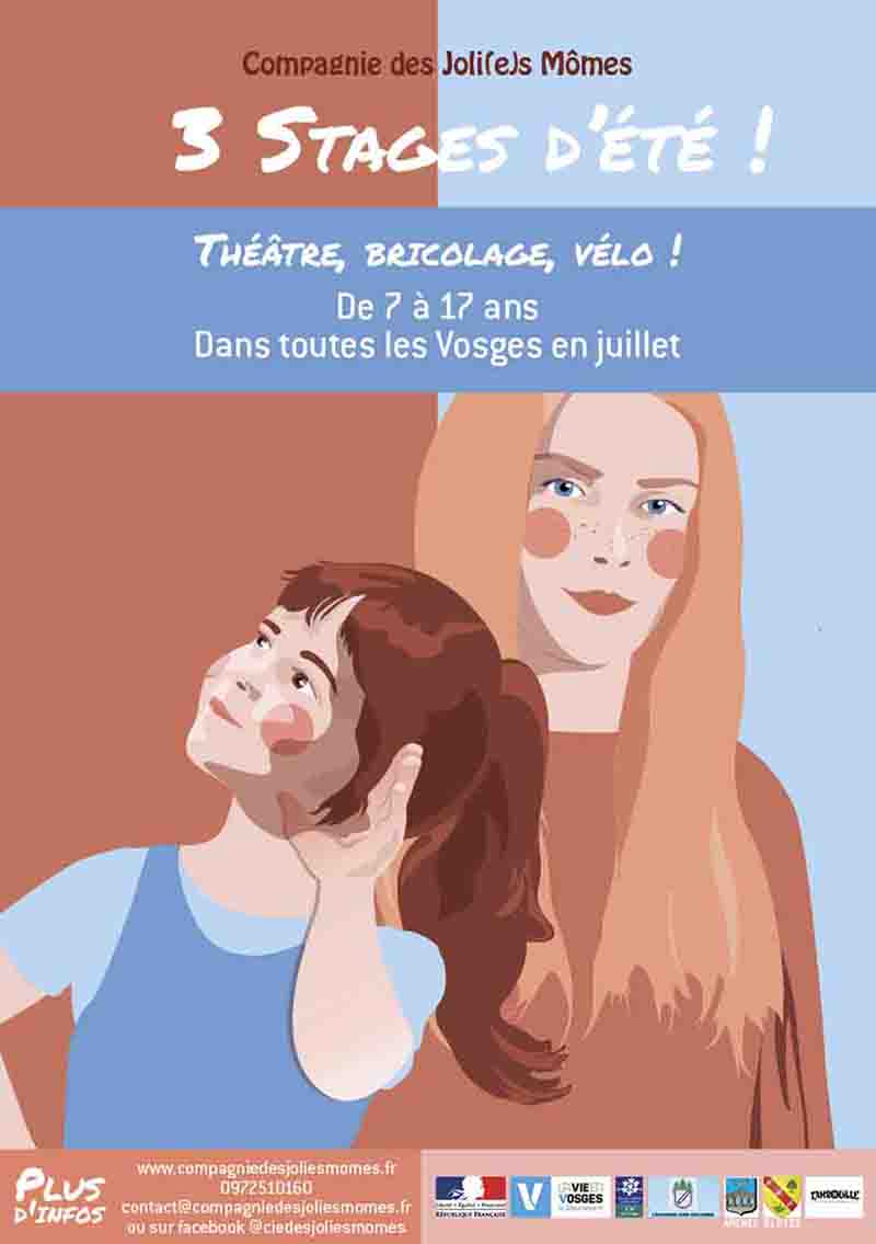 Il reste encore quelques places pour les stages de création, pour les jeunes de 7 à 18 ans, organisés par La Compagnie des Joli(e)s Mômes cet été dans les Vosges. Pour plus d'informations : 09 72 51 01 60