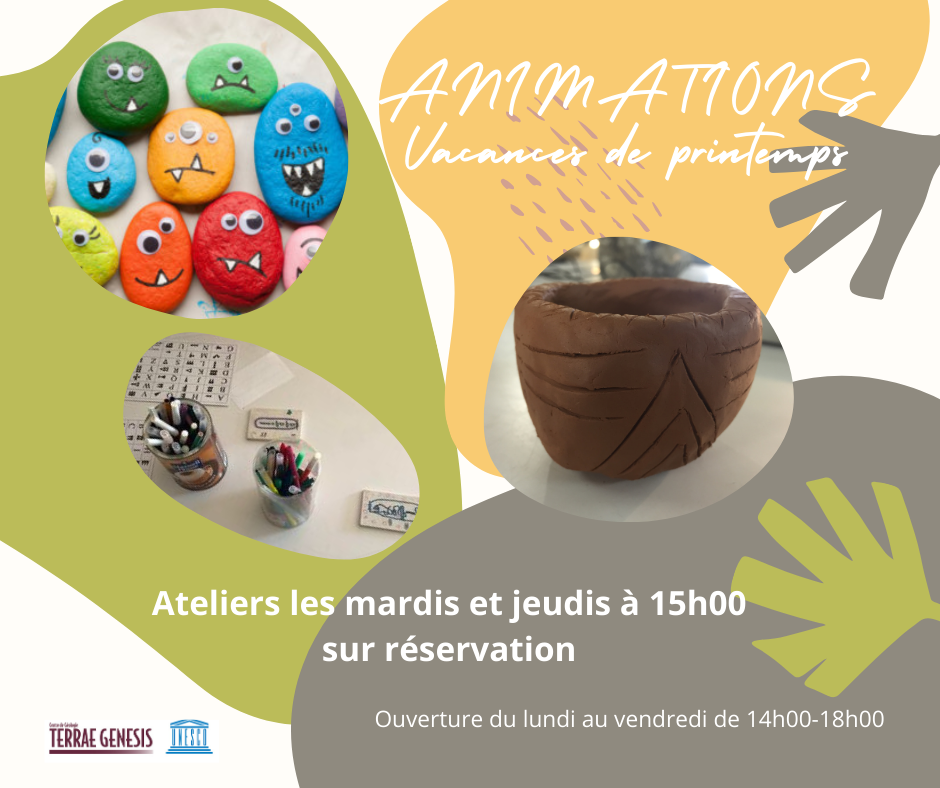 Chaque mardi et jeudi à 15h, les plus jeunes pourront participer à des ateliers créatifs et éducatifs, pendant que les adultes profiteront de leur visite. Sur réservation au 03 29 26 58 10 (l’après-midi) ou par mail à lemusee@terraegenesis.org.