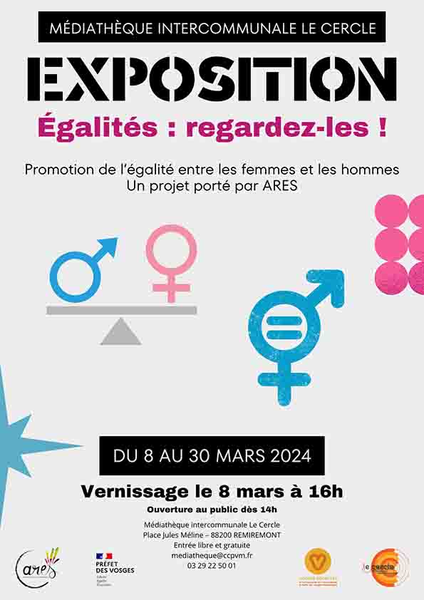 L'association intermédiaire ARES organise une exposition photo « Égalités : regardez-les » du 8 au 30 mars à la médiathèque intercommunale le Cercle à Remiremont.