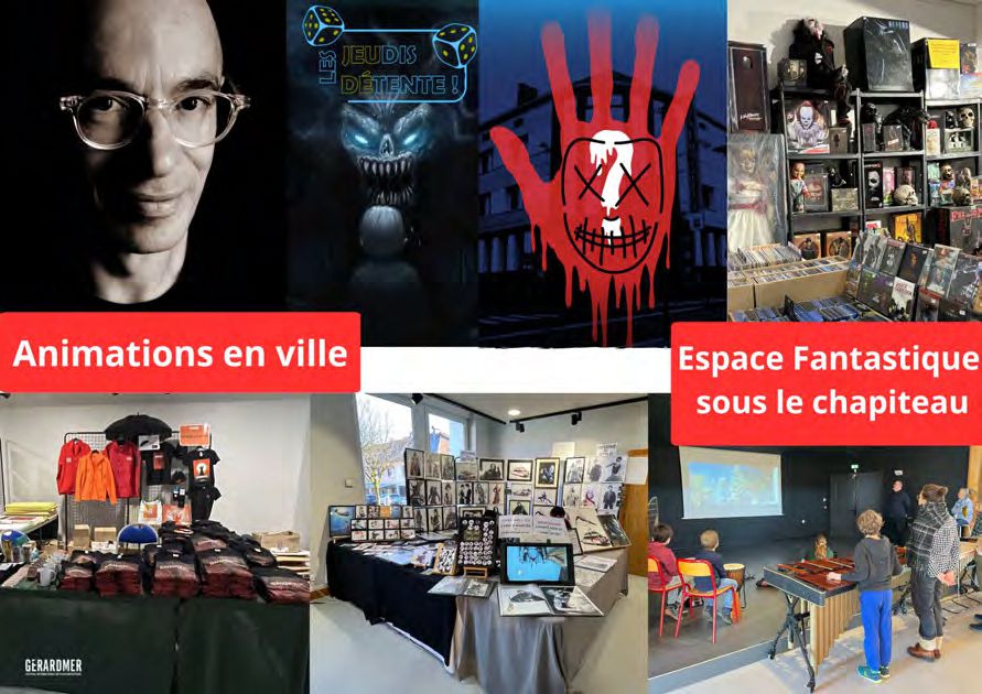 Tout au long de la manifestation, de nombreuses animations gratuites sont proposées en ville. Zombiewalk, maquillage, animations jeunesse, murder party, méditation guidée vers des mondes fantastiques, quiz, ateliers musicaux, concours de décorations de vitrines, maison de l’horreur, jeu de piste et manège de réalité virtuelle s’adressent à tous les publics.
