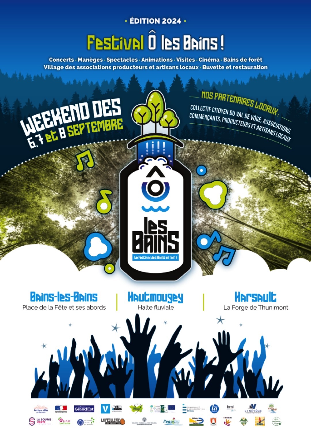 La commune de La Vôge-les-Bains et de nombreux acteurs locaux vous donnent rendez-vous du vendredi 6 au dimanche 8 septembre 2024 pour la quatrième édition du « Festival Ô les Bains ! ». Ce festival, adapté à tous les publics, propose une multitude d’activités, animations, concerts et spectacles, répartis sur presque 10 sites différents et mettant en valeur le territoire et ses spécificités locales telles que l’eau, la forêt et la ruralité.