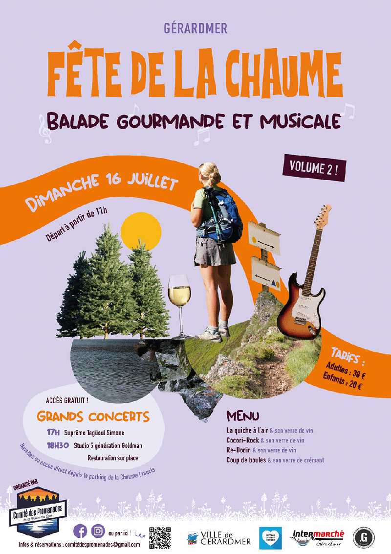 Après une première édition en 2021, l'association Comité des Promenades de la Vallée des Lacs est de retour le dimanche 16 juillet prochain, sur le secteur de la Chaume Francis à Gérardmer, avec "la Fête de la Chaume" qui prendra la forme d'une balade de 9.5 km (départ à partir de 11h), accessible à tous, ponctuée de 4 points gourmands et musicaux.