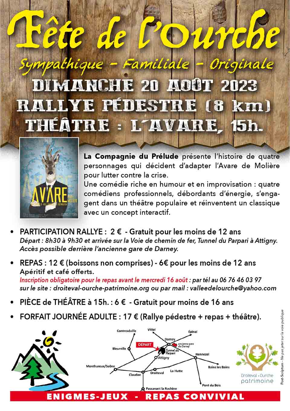 Cette année, la fête de l’Ourche aura lieu le dimanche 20 août avec un rallye pédestre de 8km à la portée de tous entre Claudon et Attigny. Un repas et une pièce de théâtre sont également de la partie pour cette journée familiale.