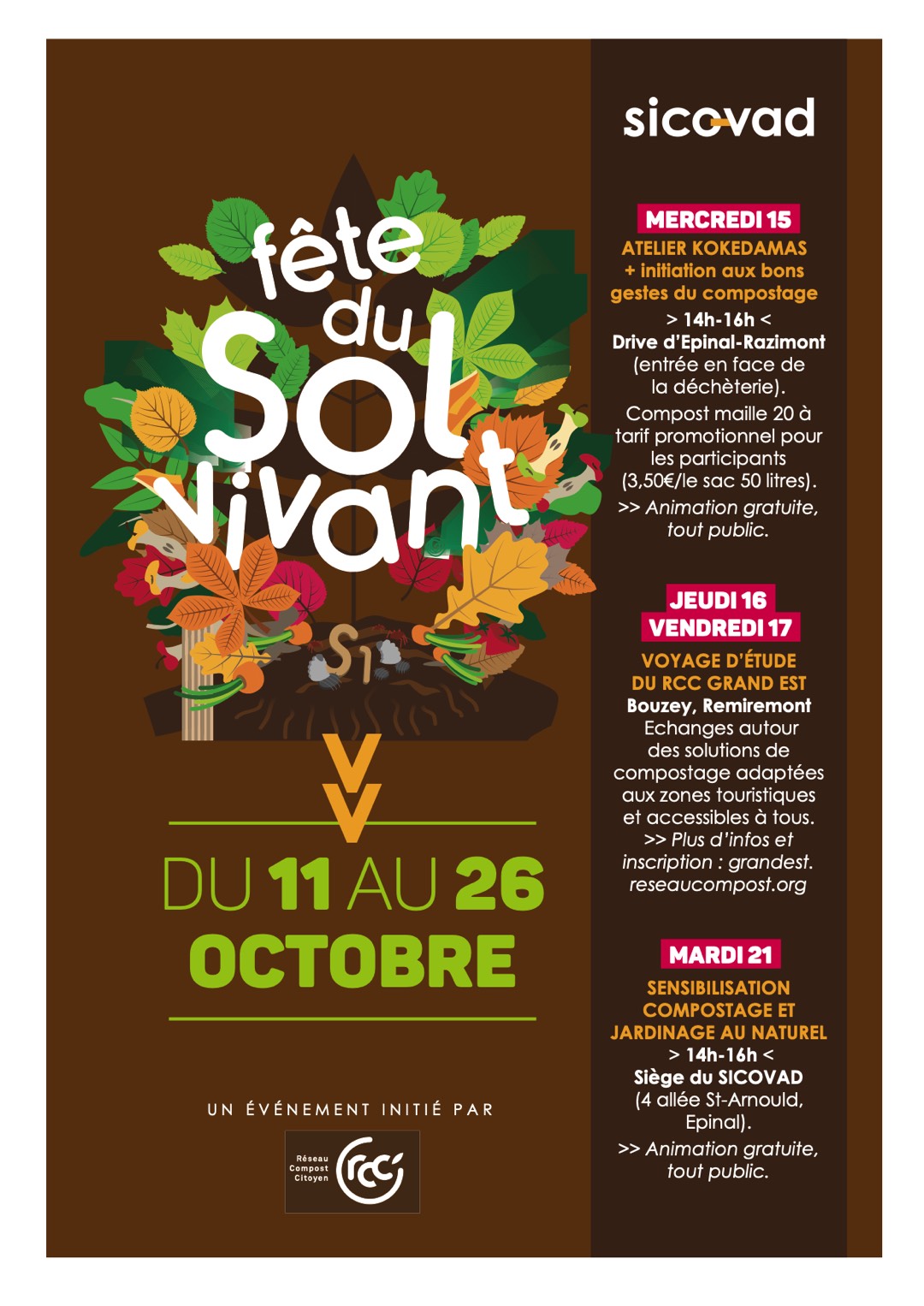 Un temps d’échange autour du compostage et du jardinage au naturel se tiendra de 14 h à 16 h au siège du SICOVAD, 4 allée Saint-Arnould à Épinal. L’animation, gratuite et ouverte à tous, permettra de découvrir des gestes simples pour préserver la qualité du sol et réduire ses déchets organiques.