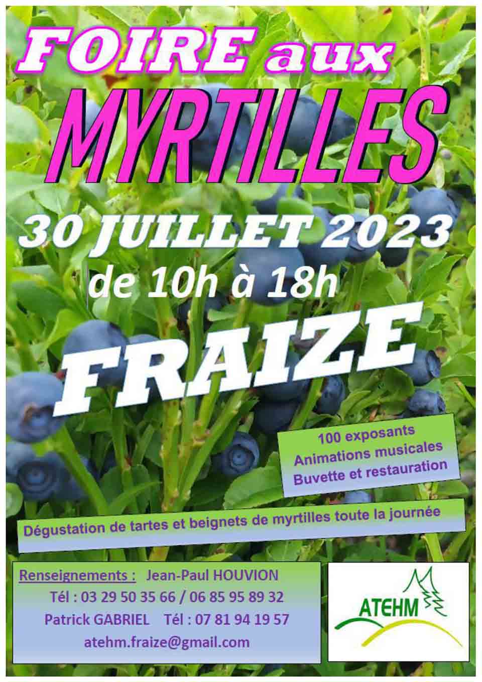 L’association Animations Touristiques en Haute-Meurthe (ATEHM) organise la foire aux myrtilles de Fraize, qui se déroulera le dimanche 30 juillet de 10h à 18h.