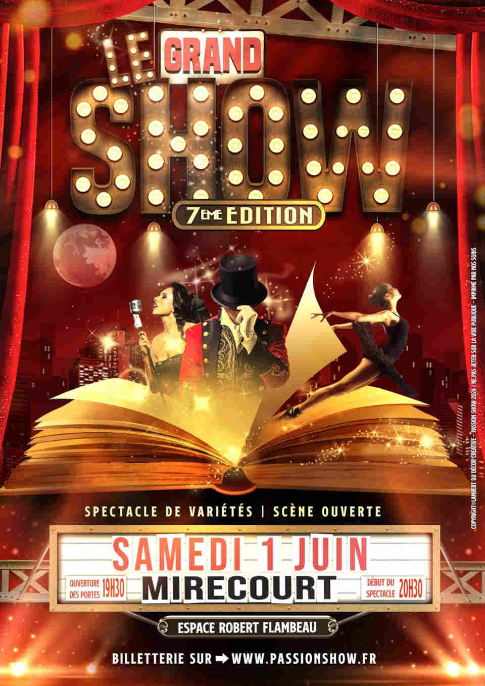 L'association culturelle PASSION SHOW, organise la 7ème édition de son Grand Show, spectacle de variétés et tremplin artistique qui aura lieu le samedi 1er juin à l’Espace Flambeau de Mirecourt (Vosges) - avenue Charles Duchêne.