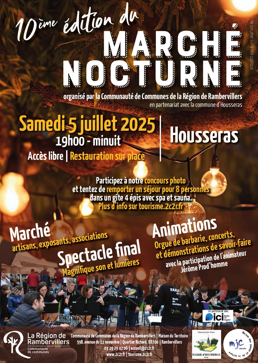 La Région de Rambervillers organise ce samedi à Housseras la 10? édition de son Marché Nocturne. Un événement festif alliant artisanat, musique et patrimoine local.