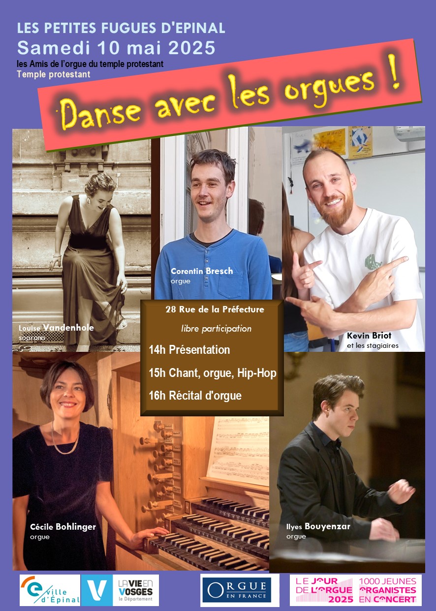 Le samedi 10 mai 2025, le temple protestant d’Épinal vibrera au son de l’orgue et des pas de danse. À l’occasion de la Journée de l’Orgue, l’association Les Petites Fugues d’Épinal, membre d’Orgue en France, propose une série de rendez-vous musicaux et chorégraphiques sous le thème « Danse avec les orgues ».