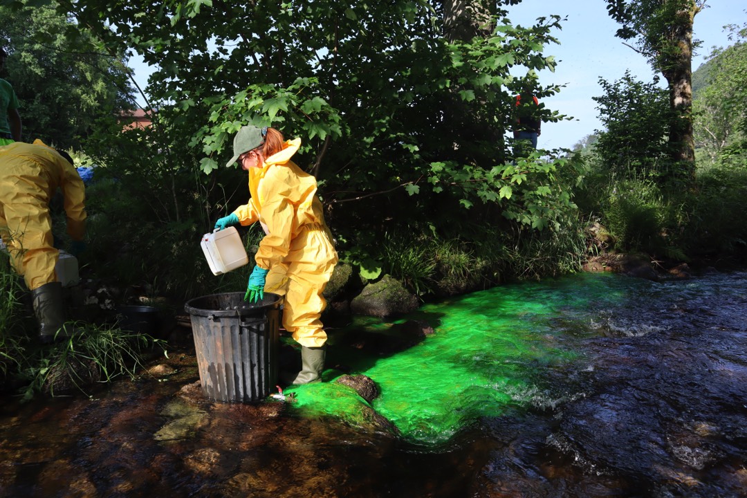 L’opération, achevée ce vendredi 13 juin, visait à étudier les échanges entre la rivière Moselotte et sa nappe alluviale, à l’aide de fluorescéine, un traceur fluorescent sans danger pour la santé ni l’environnement.