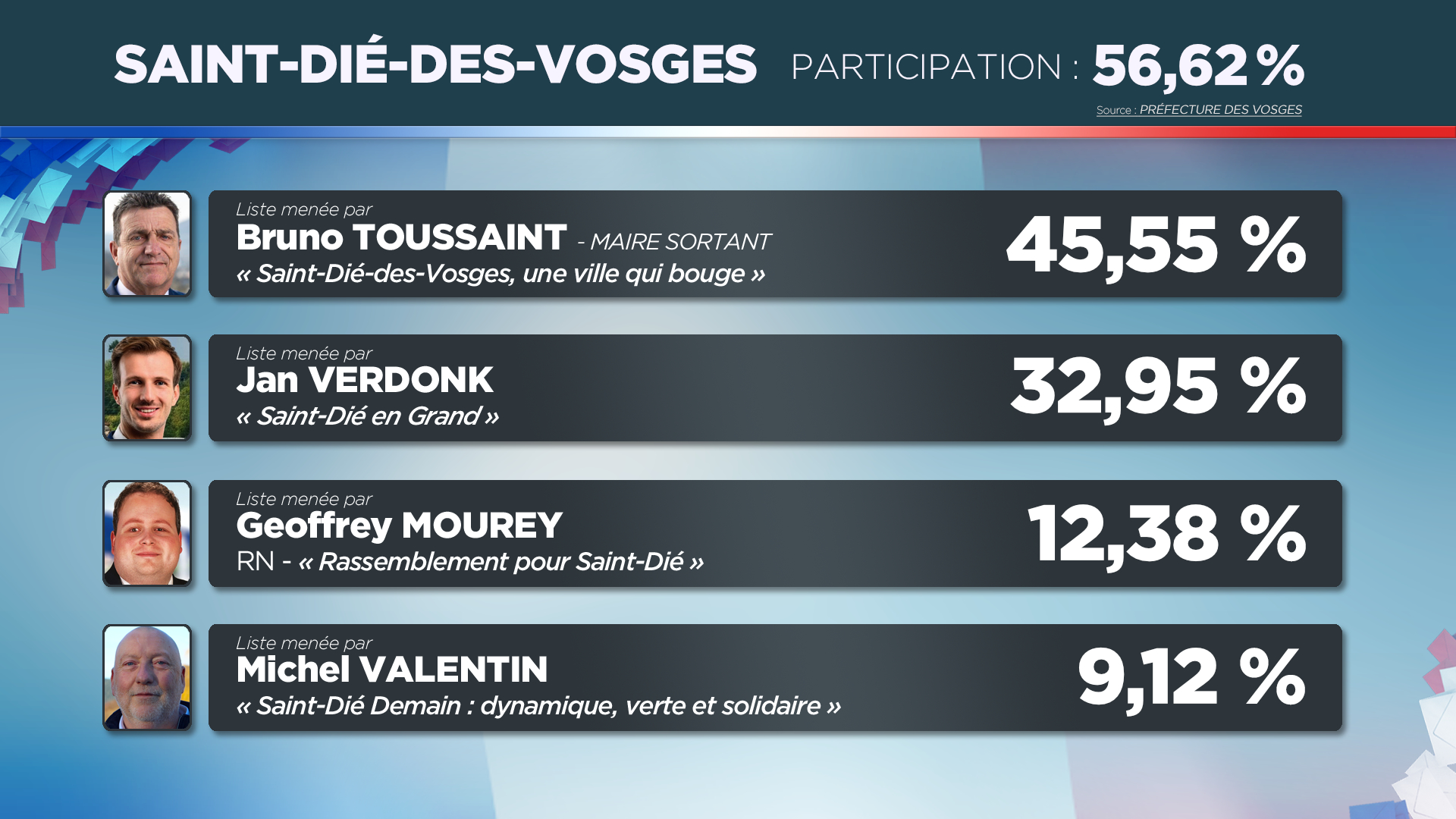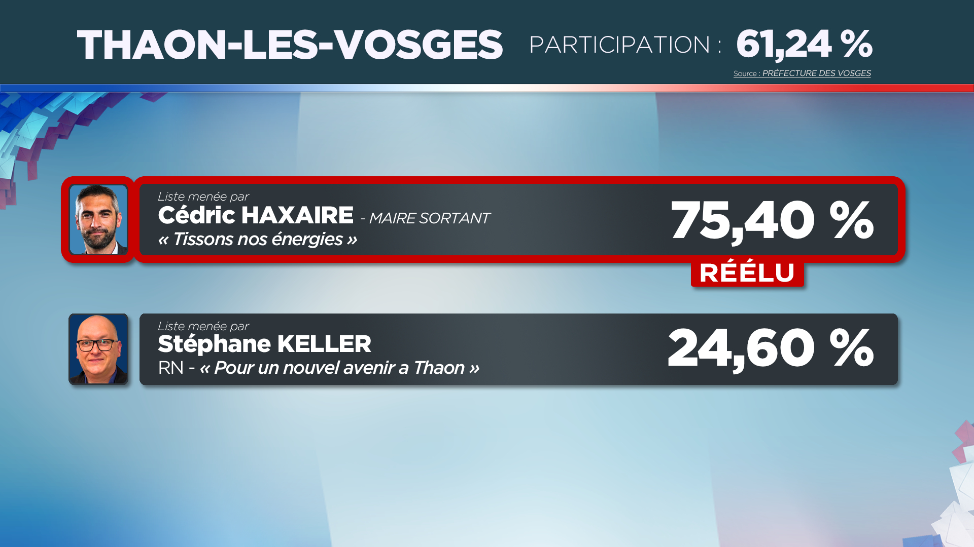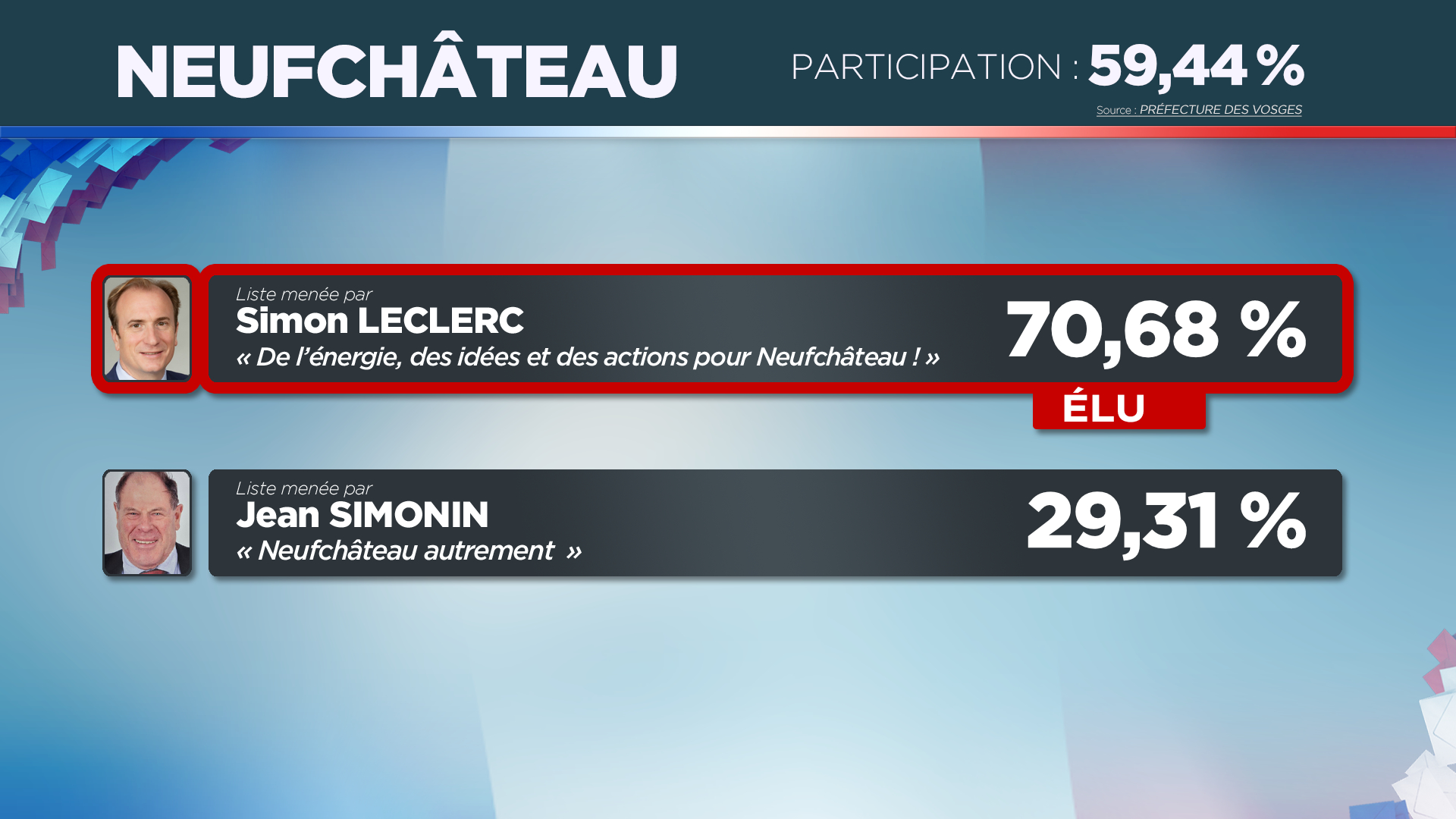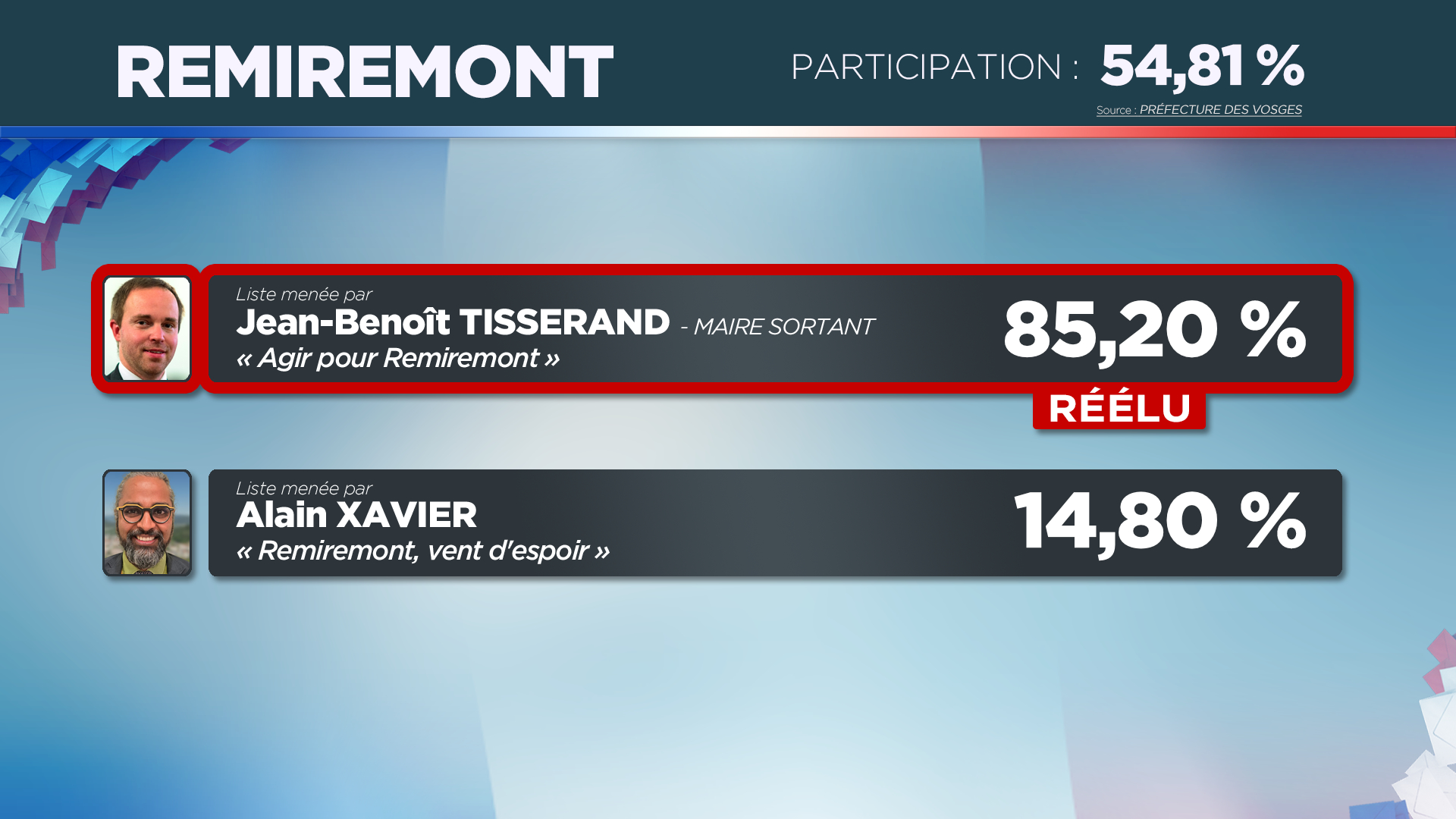 Résultats, réactions, analyses, invités en plateau : Vosges Télévision vous donne rendez-vous ce dimanche 15 mars dès 19h45 pour une grande soirée électorale consacrée au premier tour des municipales dans les Vosges. Retrouvez aussi nos reportages et débats réalisés en amont du scrutin.