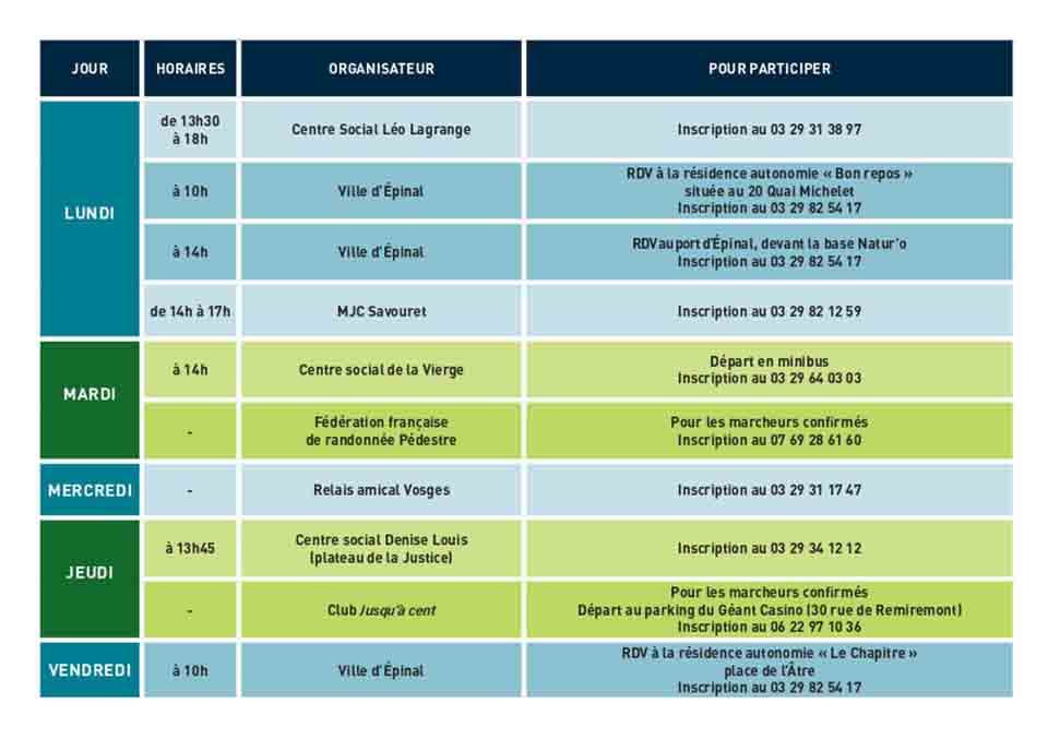 - Les autres marches organisées par les partenaires de la Ville du lundi au vendredi