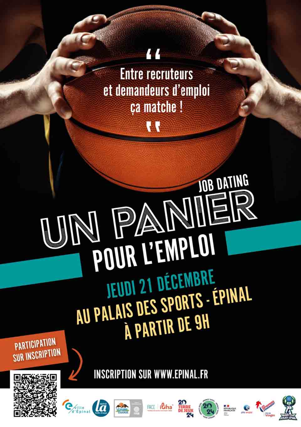 Cette journée, organisée en partenariat avec le Comité des Vosges de basket, Pôle Emploi et FACE Ilhia, débutera jeudi 21 décembre, par un temps d’accueil, puis un tournoi de basket 3×3, à partir de 9h30. Suivra un repas offert par la ville, puis une présentation des entreprises partenaires, à partir de 13h30. Enfin, un job dating proposera aux demandeurs d’emploi de rencontrer recruteurs et représentants des entreprises partenaires, pour des entretiens d’embauche.