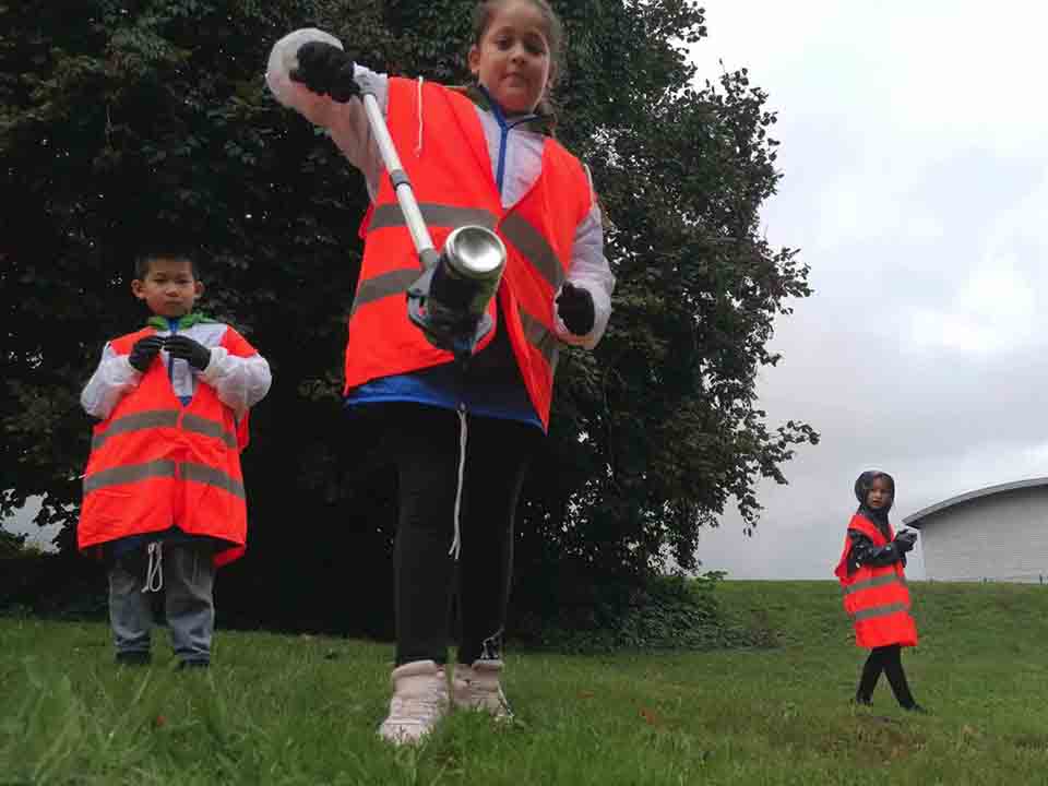 En photo des enfants du centre de loisirs, autour du plan d'eau. Quatre autres groupes, des adultes, sont vers le centre Leclerc, aux étangs de la prairie du Vouau, à la confluence Moselle-Moselotte ou encore le long du ruisseau du Fouchot.