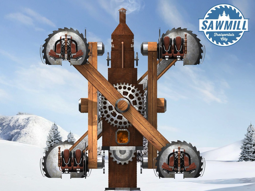 SAWMILL viendra compléter les 37 attractions actuelles et sera intégré dans la zone forestière, à proximité de Timber Drop, du Flum et de la Ronde des rondins. Avec ses imposants bras rotatifs et ses sièges en mouvement perpétuel, cette nouvelle installation recrée l’effervescence d’une scierie à vapeur hors norme, emportant les visiteurs dans les rouages d’une machine géante à plus de 10m du sol.