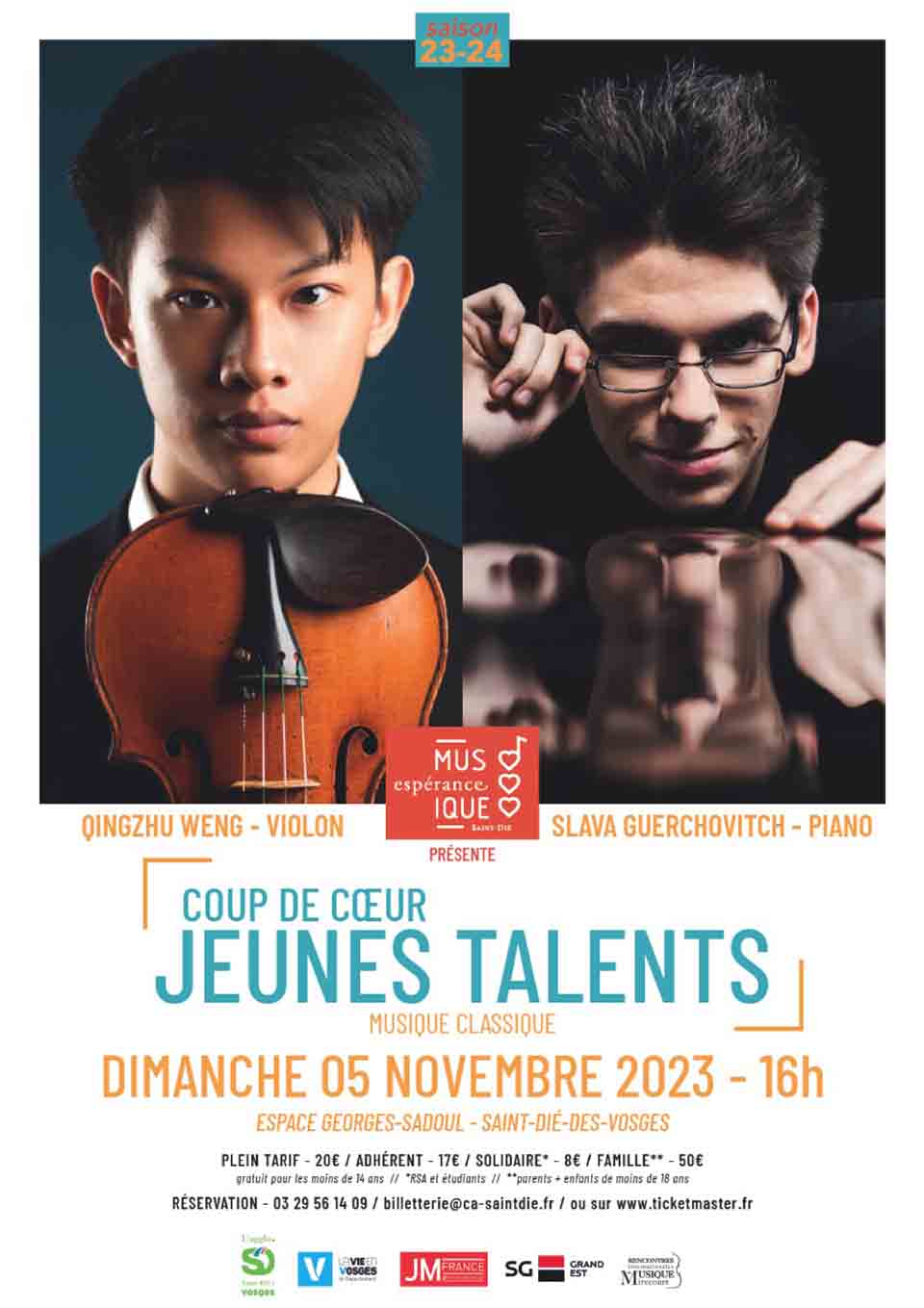 Qingzhu Weng (violon) et Slava Guerchovitch (pianiste) vont se produire ensemble sur scène pour un concert inédit. C’est une occasion rare de découvrir ces musiciens brillants, considérés comme les plus prometteurs de leur génération.