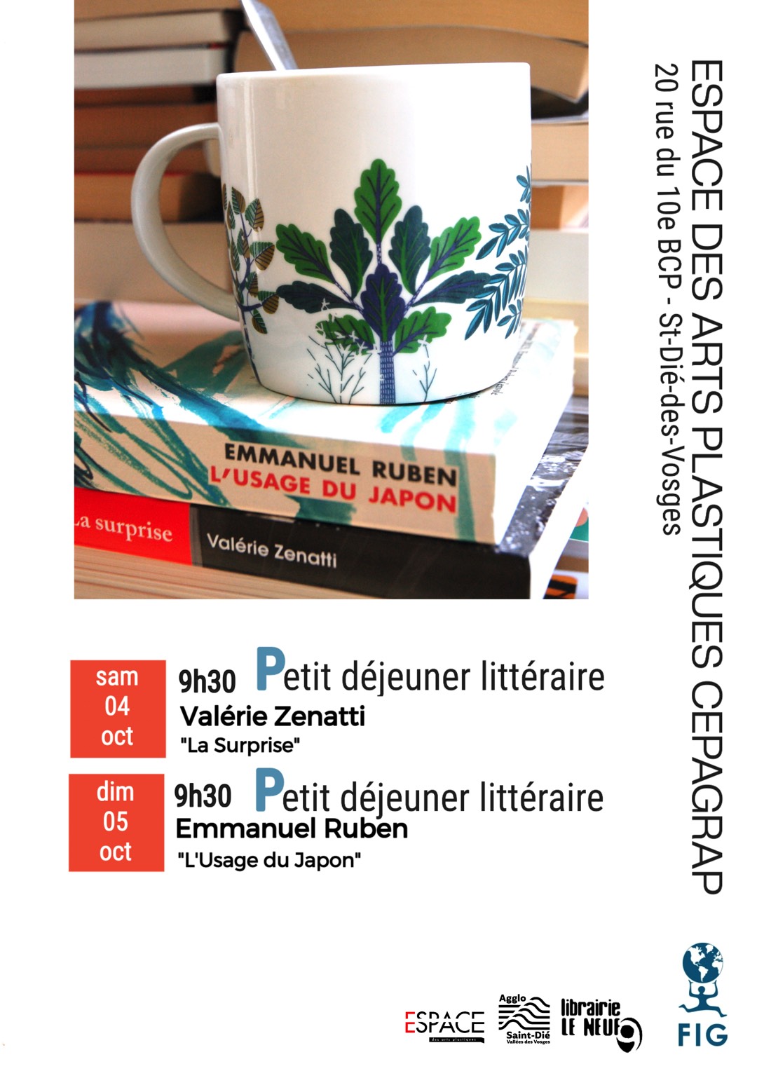 - Petit déjeuner littéraire avec Emmanuel Ruben (L’Usage du Japon) : dimanche 5 octobre à 9 h 30.
