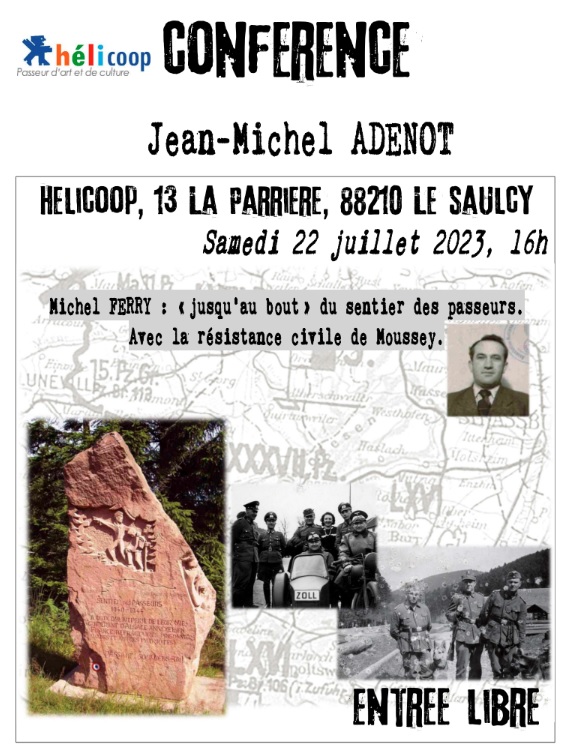 « 1940-1944, sur le sentier des passeurs avec Michel FERRY, une période revisitée à la lumière des archives. Suivons-le enfin "jusqu'au bout du chemin", dans ses relations avec la résistance civile de Moussey et face aux récupérations de l'histoire. »