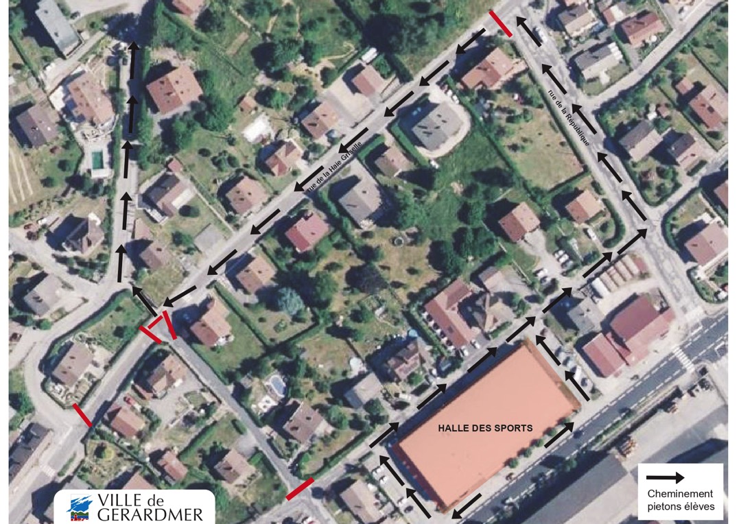 Jusqu’à la fin des travaux, le cheminement piétons pour les élèves entre les arrêts de bus (Halle des sports) et la cité scolaire se fera obligatoirement par la rue de la République, la rue de la Haie Griselle et du chemin des Epinettes.