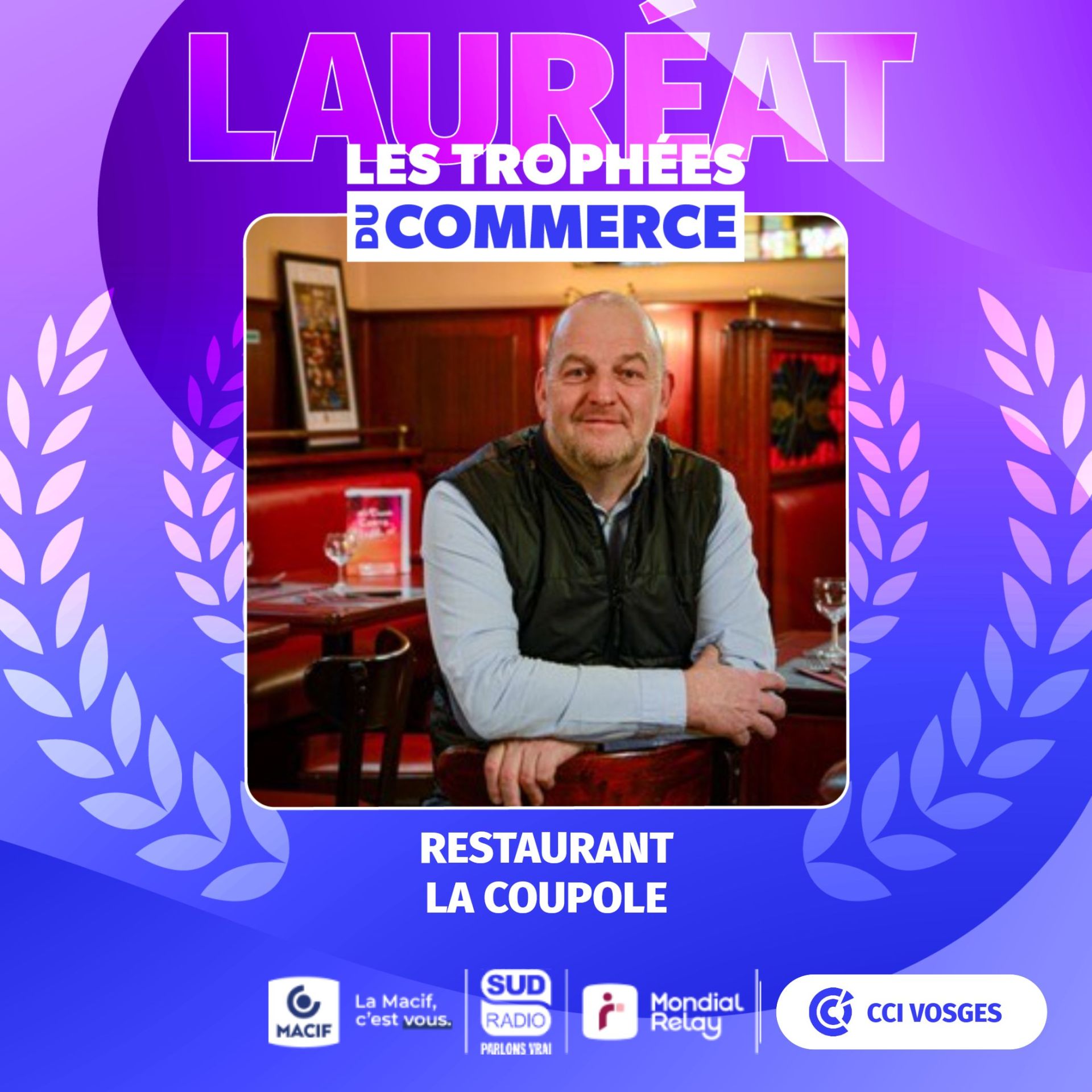 La Coupole s'est imposée comme un exemple de reprise réussie, alliant respect de l'histoire du lieu et modernisation de l'offre. Cet établissement emblématique de Remiremont a su préserver sa clientèle fidèle tout en insufflant un nouveau dynamisme, grâce à une vision novatrice et des services adaptés aux attentes du public. Son fort engagement dans la vie locale a particulièrement retenu l'attention du jury. Toujours présente lors des événements de la ville, La Coupole contribue à l'animation du territoire en tenant un stand systématique devant son restaurant lors des manifestations locales. L'entreprise a su se réinventer en proposant de nouveaux services, comme la vente de pain le dimanche, un chalet de Noël pour dynamiser la saison, ou encore des événements accords mets et vins (entre autres), permettant d'attirer une nouvelle clientèle et de fidéliser les habitués. Enfin, son engagement pour une cuisine de qualité privilégiant les produits locaux illustre une véritable volonté de valoriser le terroir et les circuits courts. Grâce à cette approche mêlant tradition, innovation et proximité avec la clientèle, La Coupole se distingue comme un acteur clé du commerce local.