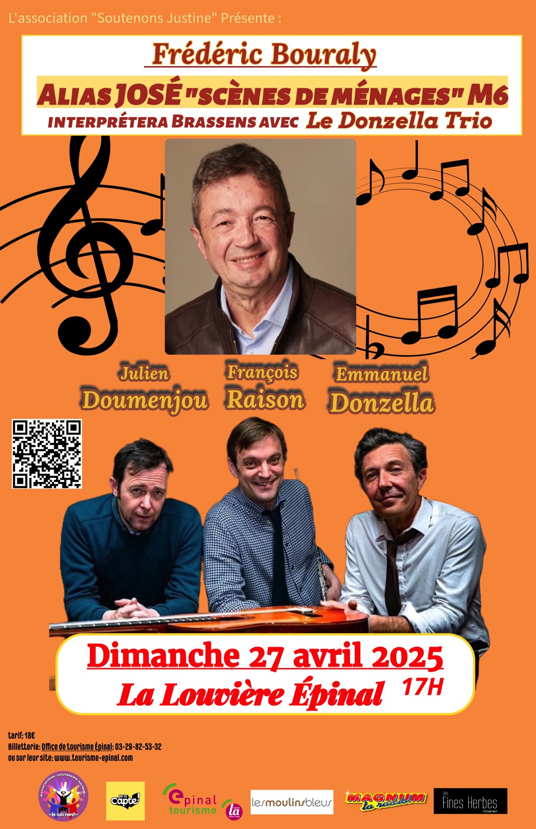 Le Donzella Trio, composé d’Emmanuel Donzella, Julien Doumenjou et François Raison, sera accompagné d’un invité spécial : Frédéric Bouraly, connu pour son rôle de José dans la série “Scènes de ménages” et parrain de l’association.