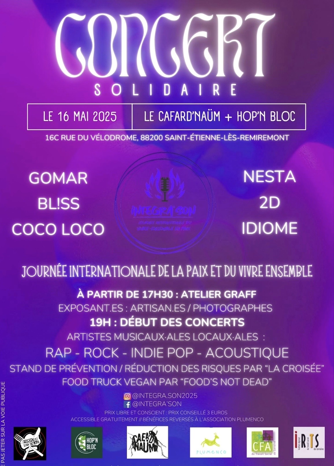 Le concert se déroulera au Cafard’Naum et à Hop’n’Bloc, deux salles situées sur le même site à Saint-Étienne-lès-Remiremont, pour une soirée solidaire, artistique et festive.