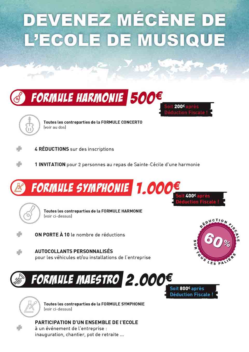 Nous avons mis au point un « kit » du mécène, que les membres du Comité vont diffuser auprès de leurs contacts. Ce kit est également disponible en téléchargement sur la page FaceBook de l'Ecole. Chacun pourra y trouver la formule adaptée à son entreprise.