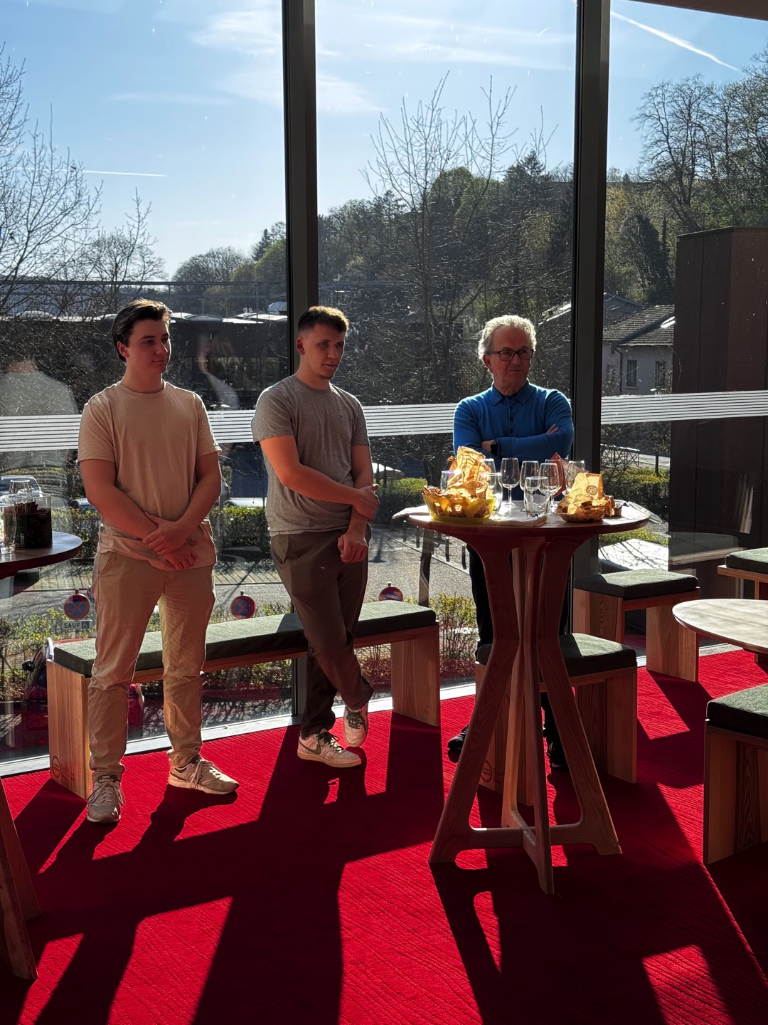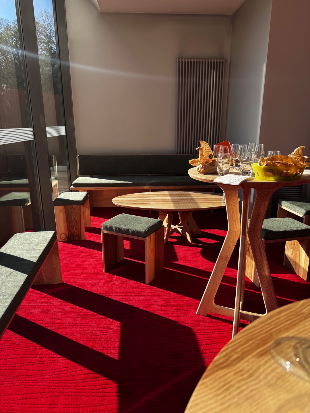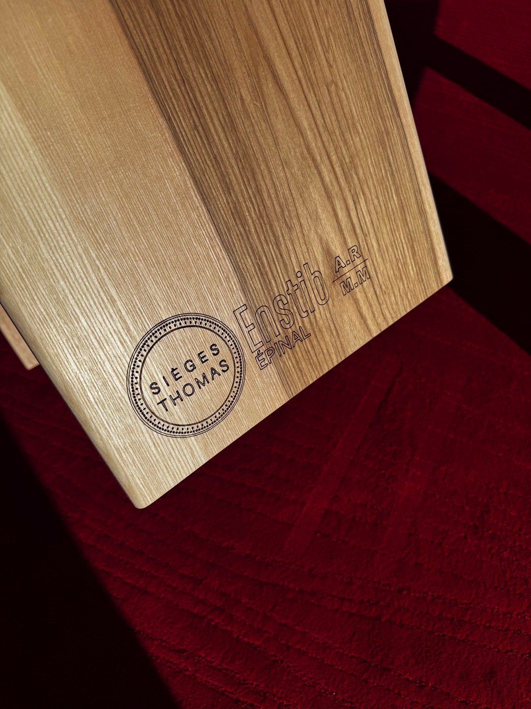 Ce projet s’est inscrit dans une belle dynamique de circuits courts : le bois utilisé provient d’une scierie vosgienne, et le mobilier a été réalisé en collaboration avec les Sièges Thomas à Épinal, avec un tissu fabriqué en France et tissé en Alsace.