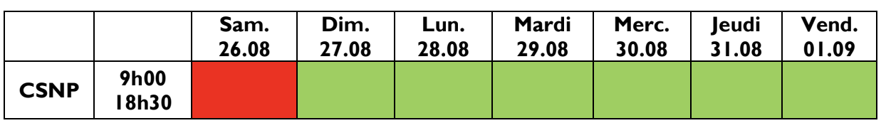 L'organisation du Centre de Soins Non Programmés (CSNP) ouvrira les jours suivants :