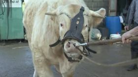 Top Chef est un taureau de race charolaise de 2 ans et 1200kg. Avant sa participation au salon de l'agriculture de Paris, l'ostéopathe est venu faire un dernier check-up et les éleveurs du GAEC Dautrot le bichonne. Le concours est prévu le 25 février et le résultat pourrait avoir des répercussions financières sur l'exploitation.