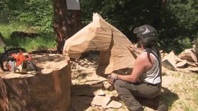 Auparavant bûcheron, Pascal s'est lancé dans la sculpture sur bois avec pour seul outil : une tronçonneuse. Il choisit uniquement des bois destinés à être abattus, s'ils sont malades, morts ou s'ils présentent un danger quelconque.