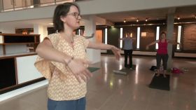 En tenue de sport, un tapis de sol sous le bras, le musée Pierre Noël de Saint-Dié-des-Vosges accueillait récemment des visiteurs d’un nouveau style pour une séance de yoga dans la grande salle des collections du XXème siècle. Julie, professeure certifiée, s’est aussi formée en Inde et enseigne notamment le viniyoga, dont le maître mot est l’adaptation du yoga à tous et partout.