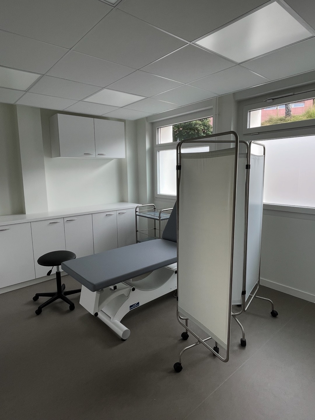 Sur 234 m², le nouveau cabinet comprend un hall central, une salle d’attente, des toilettes accessibles aux personnes à mobilité réduite, ainsi que quatre bureaux de médecins dotés chacun d’espaces de consultation et d’auscultation entièrement meublés.
