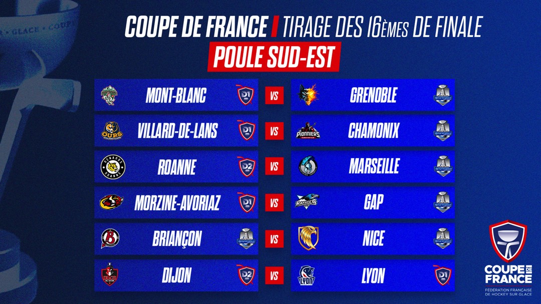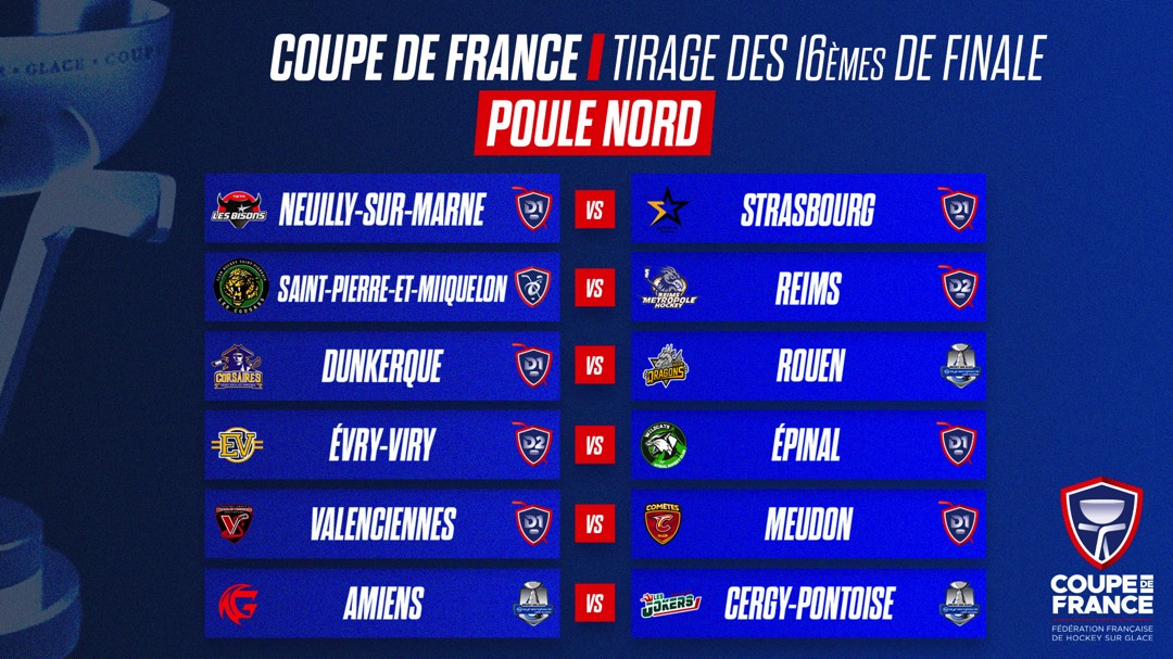 Le tirage au sort des seizièmes de finale de la Coupe de France de hockey sur glace a livré son verdict ce lundi à 13 h, au siège de la fédération. C’est Adrien Mousset, gardien de but de l’équipe de France de para-hockey, qui a procédé au tirage en présence de Luc Mainfray, responsable de la compétition.