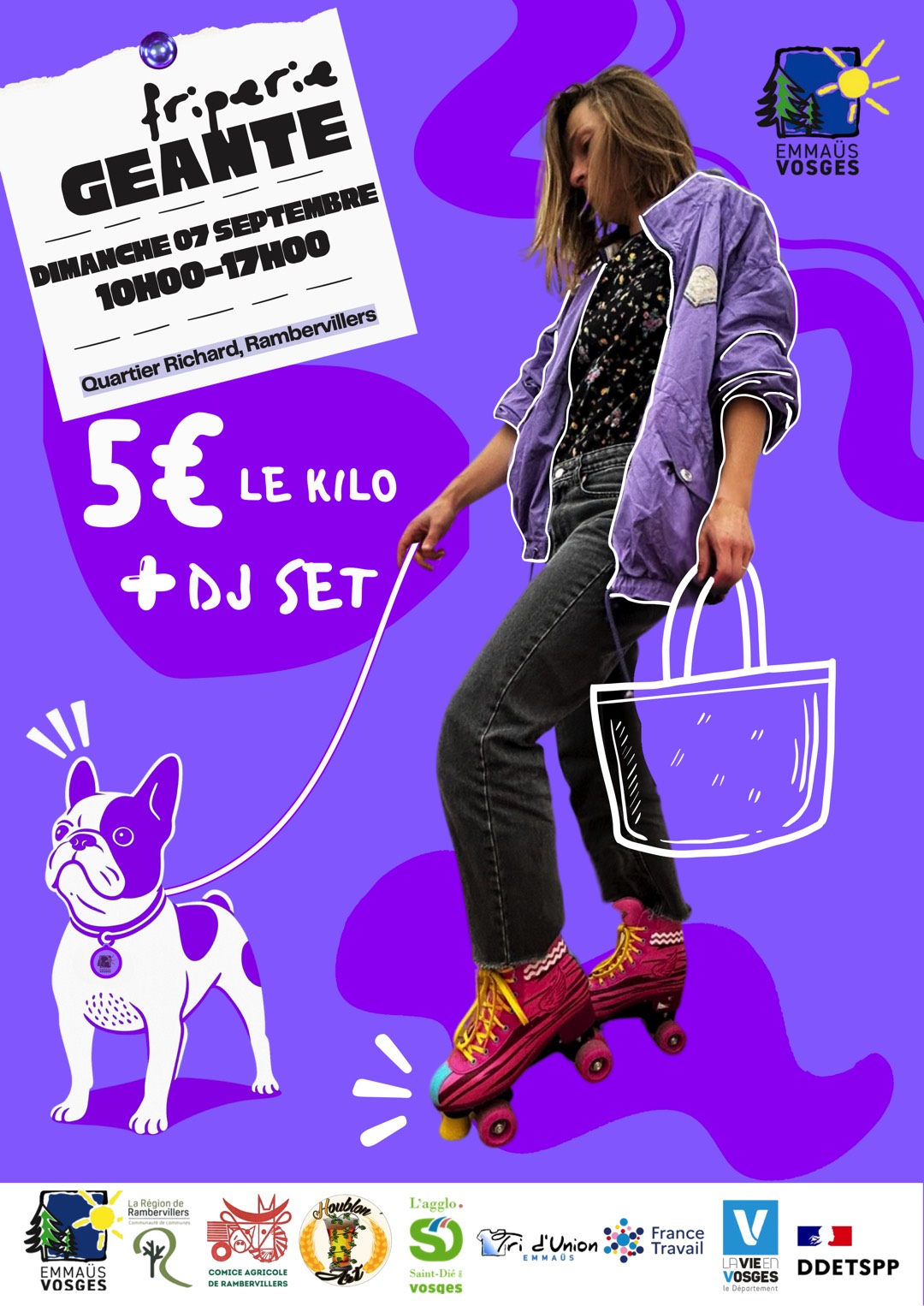 Le 7 septembre 2025, Emmaüs Vosges organise une Friperie Géante lors du Comice Agricole de Rambervillers. Vêtements à 5 € le kilo, ambiance musicale et solidarité au rendez-vous.