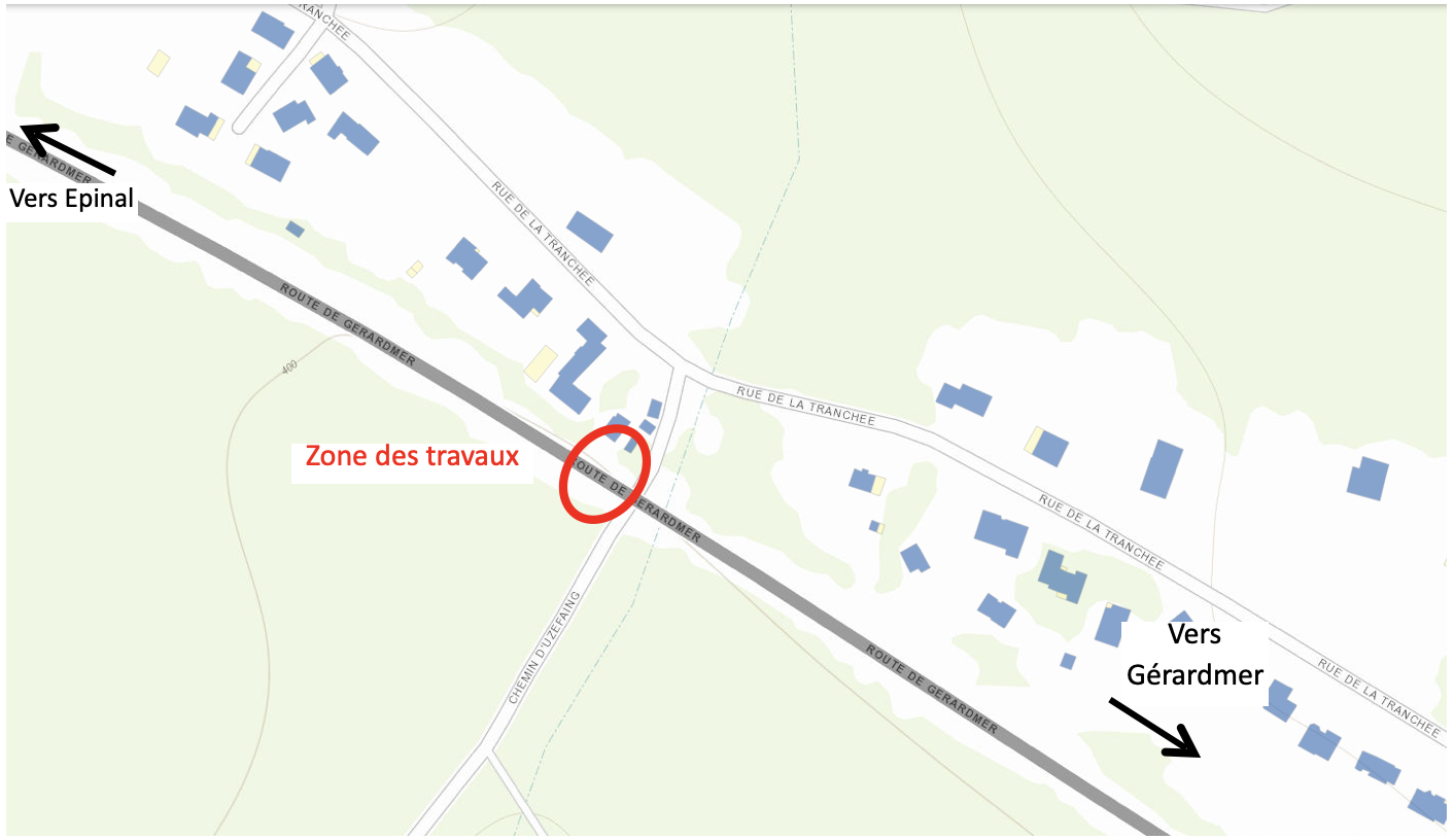 La première phase concerne le carrefour entre la RD11 et la rue de la Tranchée. Elle se déroule du 23 février au 6 mars 2026. Pendant cette période, la circulation est interdite dans le sens sortant de la rue de la Tranchée vers la route de Gérardmer. L’accès depuis la RD11 vers la rue de la Tranchée reste possible. Une déviation est mise en place par la ville.