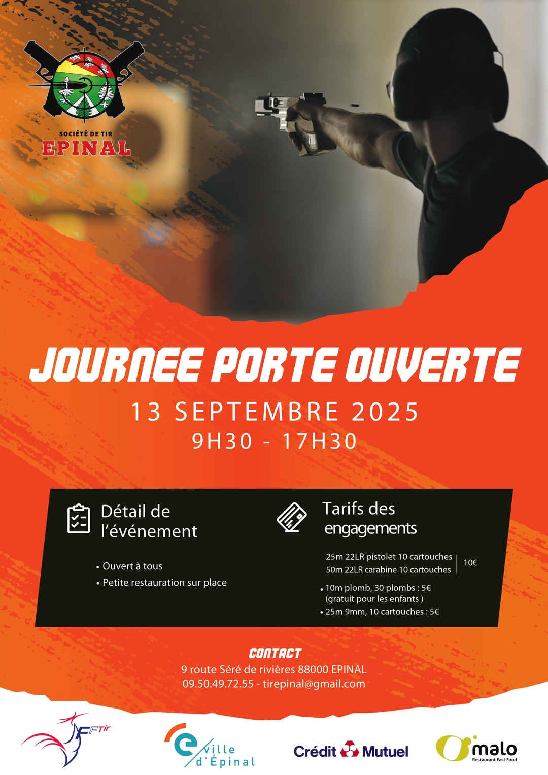 La Société de Tir d’Épinal organise une journée portes ouvertes le samedi 13 septembre 2025, de 9h30 à 17h30, au stand de tir situé à la Vierge.